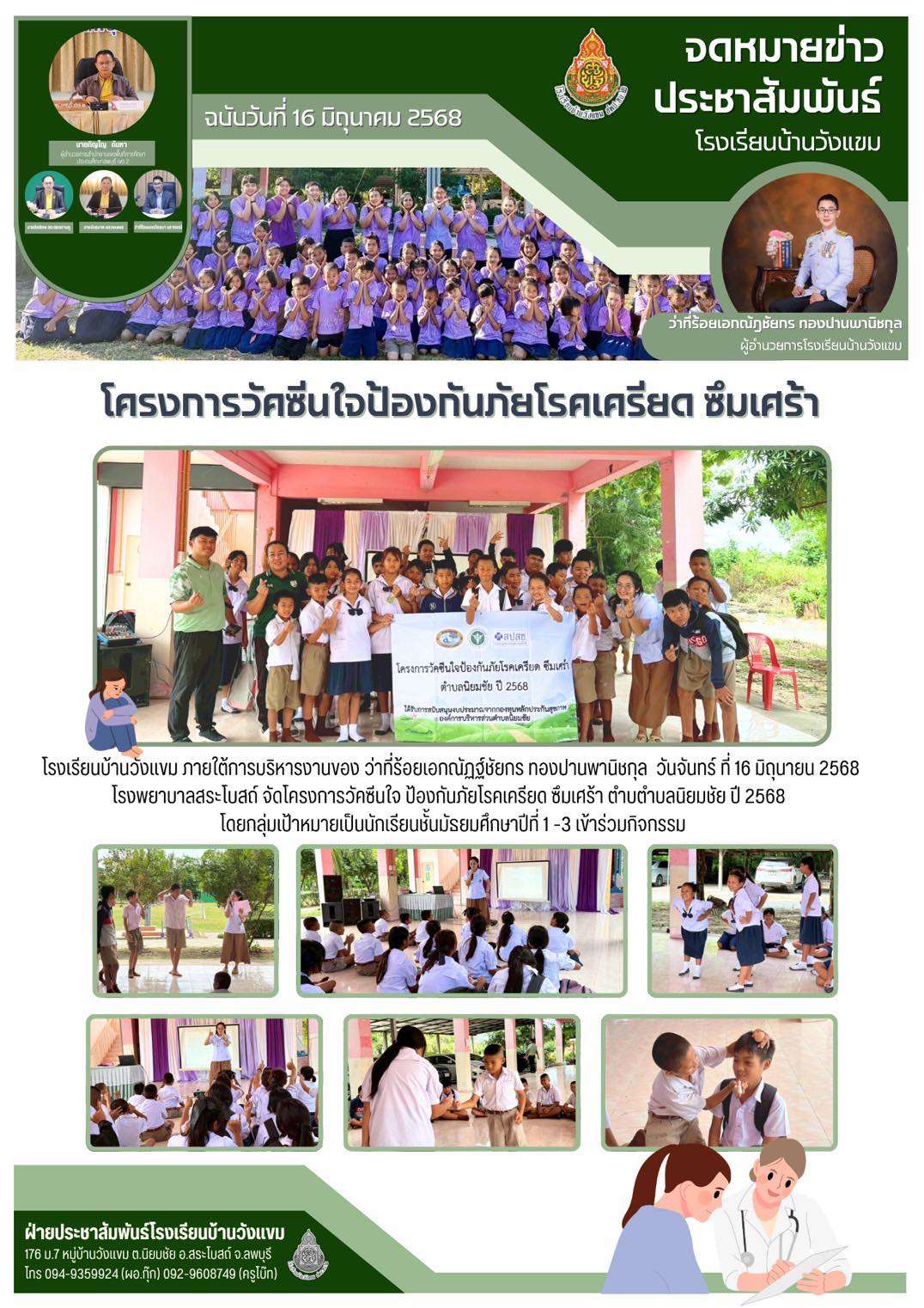 โรงพยาบาลสระโบสถ์ จัดโครงการวัคซีนใจ ป้องกันภัยโรคเครียด ซึมเศร้า ตำบตำบลนิยมชัย ปี 2568