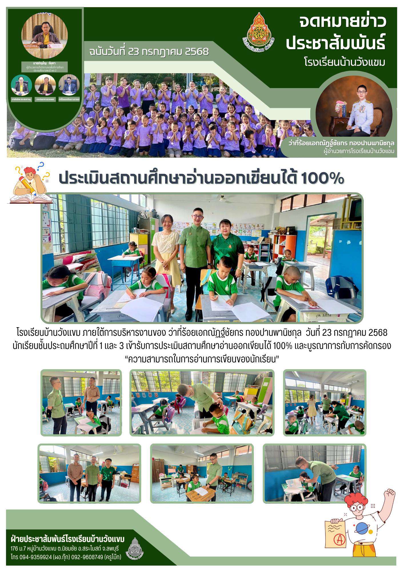 ดำเนินการประเมินสถานศึกษาอ่านออกเขียนได้ 100%