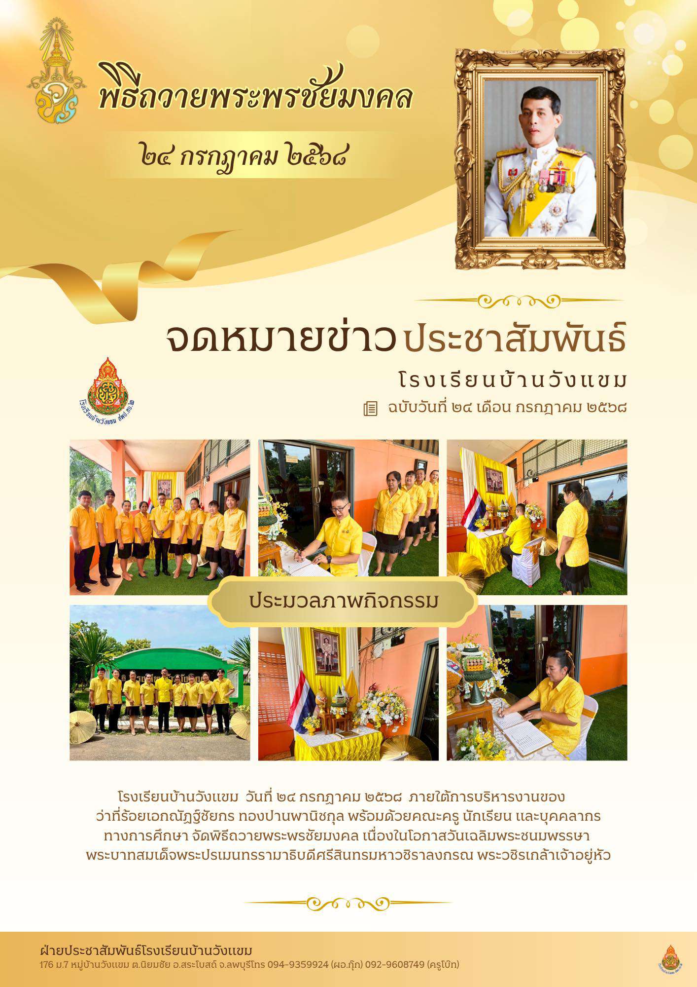 โรงเรียนบ้านวังแขม จัดพิธี ลงนามถวายสัตย์ปฏิญาณฯ เนื่องในวันเฉลิมพระชนมพรรษา 28 กรกฎาคม