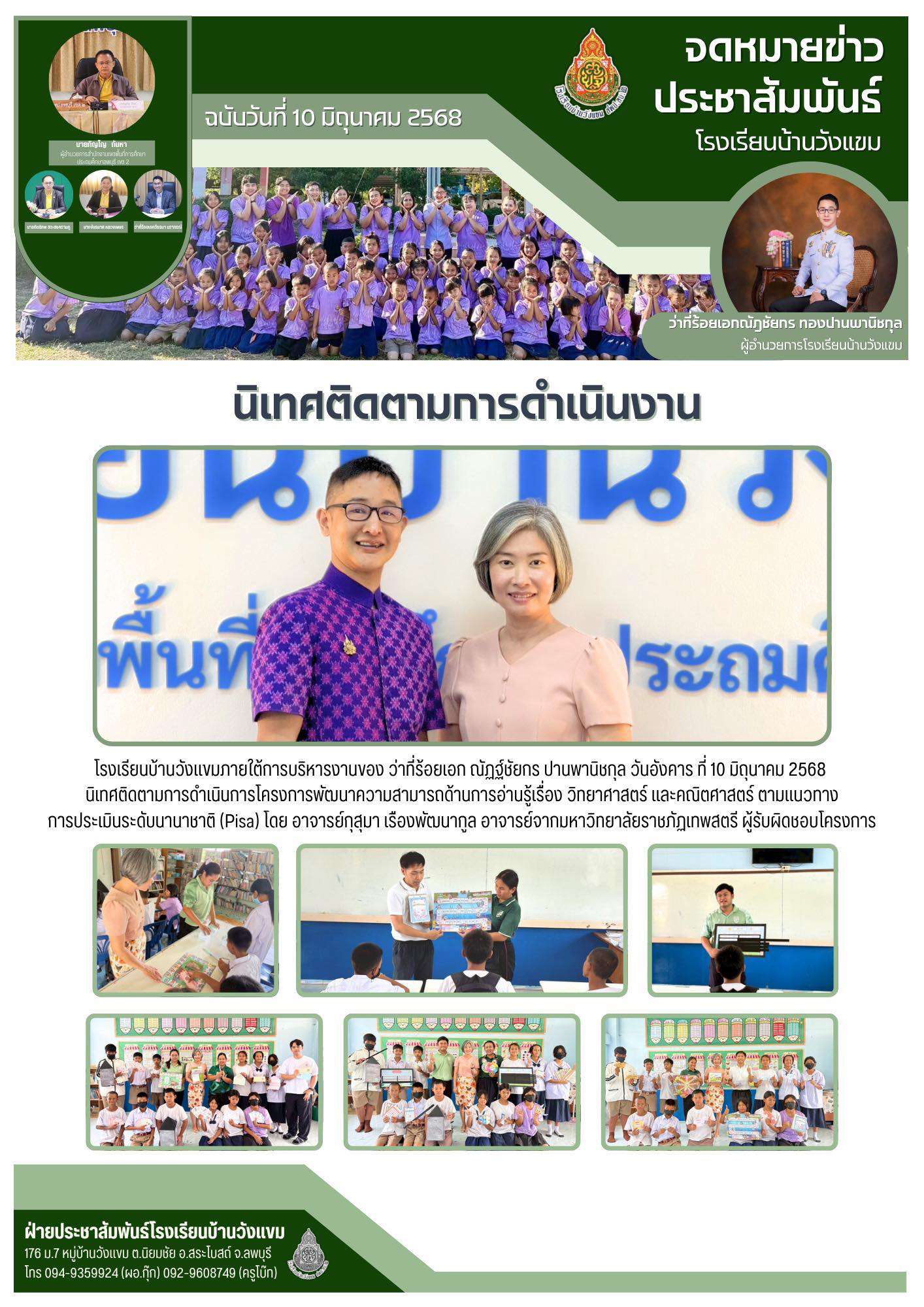 นิเทศติดตามการดำเนินการโครงการพัฒนาความสามารถด้านการอ่านรู้เรื่อง วิทยาศาสตร์ และคณิตศาสตร์ ตามแนวทางการประเมินระดับนานาชาติ (Pisa)